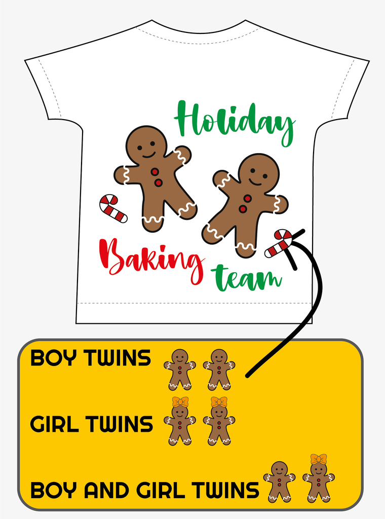 'Gingerbread Bakng Team' T-shirt or Jumper are available now to order this Christmas. All of our Christmas clothes for Twins have been designed by Twinny Things and they are the perfect outfit choice this festive season.